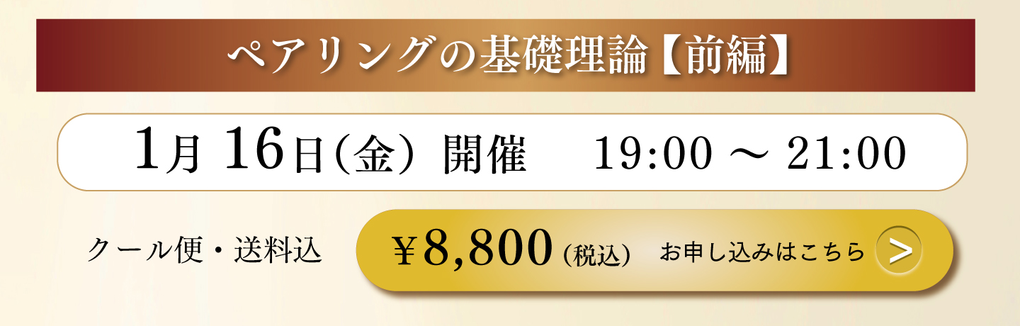 いつもながらロジカルかつ明快で素晴らしかった!後半からの参加だったので、改めてアーカイブを正座しながら視聴したいと思います!レストランでも家飲みでも、ペアリングは本当に大切な要素のため、このようにわかりやすく理論立てて説明いただけることに感謝申し上げます。今後ともよろしくお願い申し上げます。