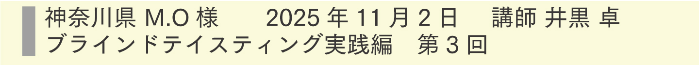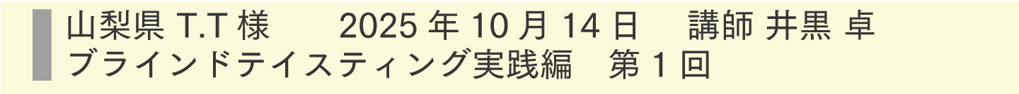 実際に井黒講師と共にブラインドでテイスティングをしていき、答えを導き出すまでの過程を学べたのでとても勉強になりました。答えに至るまでの推理の過程や可能性の探りかたなどもオンラインで拝見することができ、非常に満足度の高い講座でした。ブラインドで答えを探る難しさと楽しさの両方を感じられる講義でした。ワインの奥深さとテイスティングの面白さを実感できてとてもよかったです。