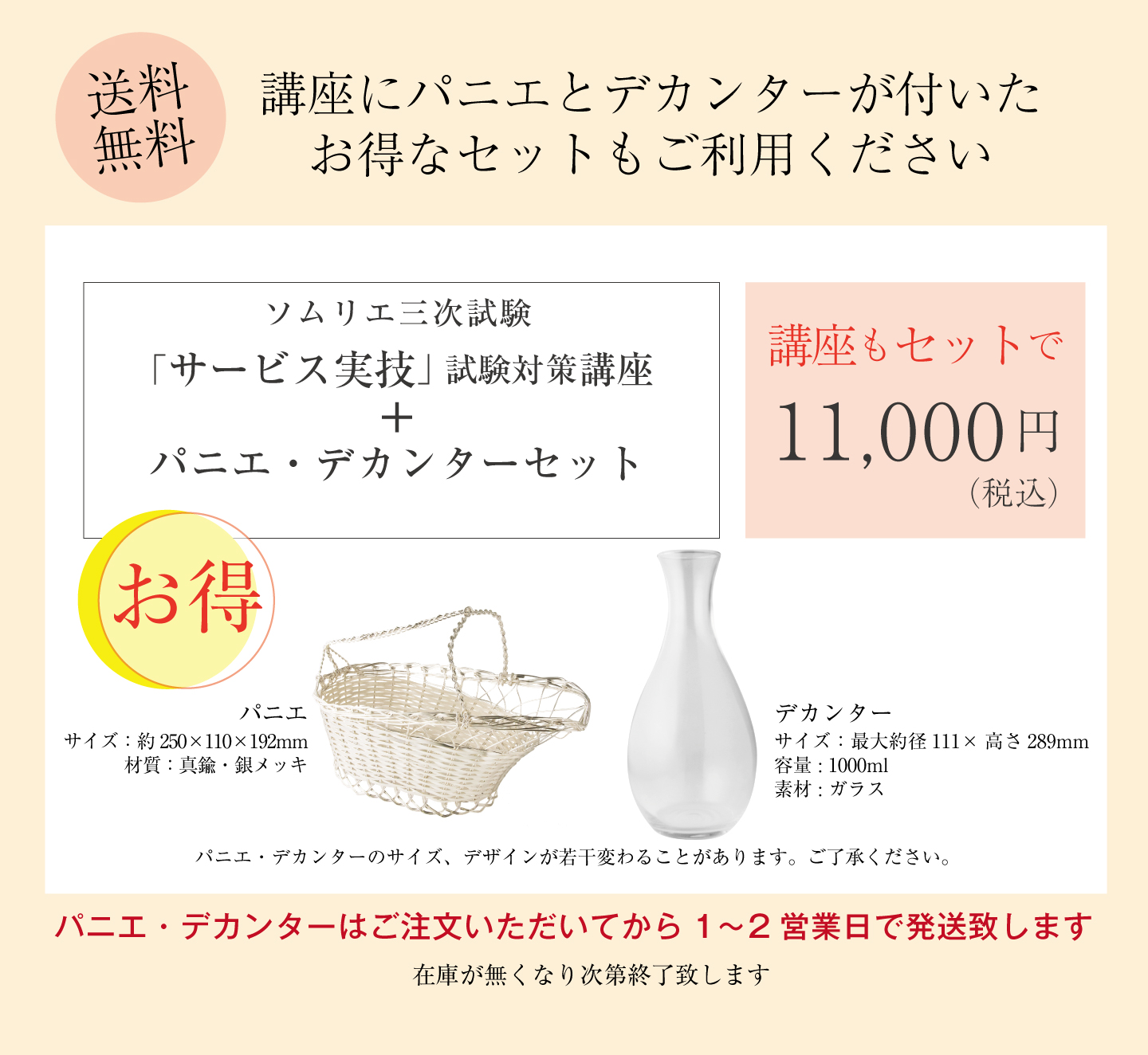 ↓ お申し込みをクリック ≫ 「講座」 or 「講座+パニエ・デカンター付き」を選択してください